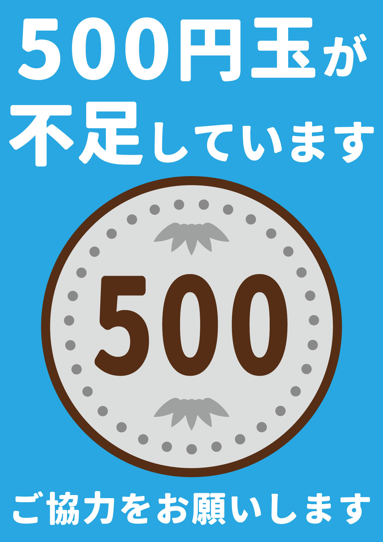 ニュースレターで500円玉が不足していることをお知らせしたところ、
